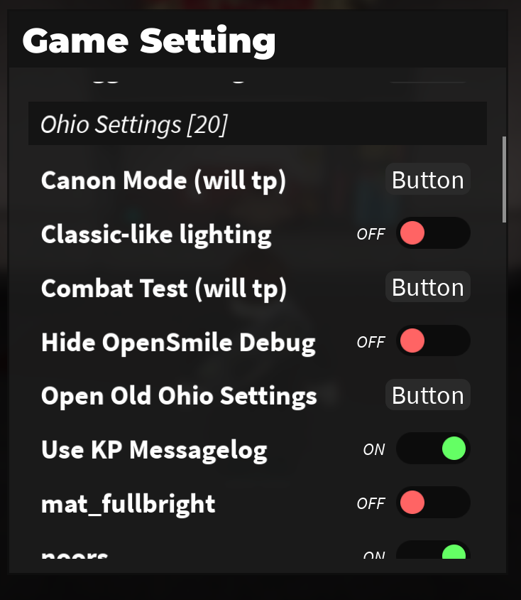 Remnant from Ohio Paradise's early days when Game Setting wasnt working yet, this menu is mostly broken now